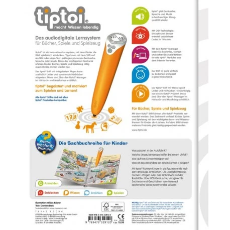 Hier brummt und knattert es: Willkommen in der Welt der Fahrzeuge!Kinder fasziniert alles, was einen Motor hat. Mit tiptoi erfahren sie Wissenswertes über die verschiedenen Fahrzeuge und ihre Aufgaben und lässt sie in die Welt der motorisierten Fahrzeuge eintauchen. Egal ob PKW, Müllwagen, Rettungsfahrzeug, Wohnmobil, Bagger, Schwertransporter oder Formel-1-Rennwagen: auf 8 vollillustrierten Doppelseiten werden die spannendsten Fahrzeuge vorgestellt. Neben kindgerechtem Sachwissen zum Thema vertiefen liebevolle Lieder und Spiele das Gelernte.Was macht der Traktor auf dem Feld? Wann kommt die Feuerwehr? Wie groß wird ein Pony? Die interaktive Sachbuchreihe tiptoi Wieso? Weshalb? Warum? beantwortet wichtige Kinderfragen auf Augenhöhe. Auf den liebevoll illustrierten Seiten tauchen die Kinder in eine Welt ein, die durch zahlreiche authentische Geräusche lebendig wird. Das Sachwissen wird altersgerecht erklärt. Die Kinder können sich dank der einfachen und intuitiven Nutzung mit dem tiptoi-Stift das Wissen selbst erschließen. Sie lernen, Zusammenhänge zu begreifen und erfahren spannende Informationen über ihren Alltag und ihre Umwelt. Tolle Geschichten, Lieder und unterhaltsame Spiele laden dabei immer wieder zum selbstständigen Entdecken und Erforschen ein.tiptoi-Stift nicht enthalten. Muss separat erworben werden..