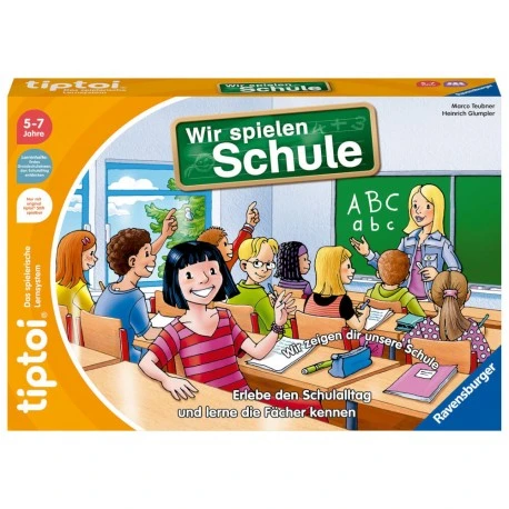 Was passiert am ersten Schultag? Und was gehört alles in die Schultasche? Mit Wir spielen Schule” gewinnen 1 – 4 Kinder von 5 – 7 Jahren Einblicke in das Leben eines Schulkindes. Die Kinder schlüpfen in die Rollen der Schüler und erleben einen kompletten Schultag. Sie lösen knifflige Aufgaben in den Fächern Mathematik, Deutsch, Sachkunde, Sport, Kunst, Kultur, Musik, hören spannende Pausengeschichten und vieles mehr.Mit ”tiptoi Wir spielen Schule” erleben die Spieler einen spannenden Schultag mit je vier Unterrichtsstunden und einer großen Pause. Während die Kinder beim Sportunterricht selbst aktiv werden, wird im Deutsch- oder Mathematikunterricht Wissen abgefragt. Vor jedem Schultag kann man sich dabei für leichtere oder schwierigere Fragen im Unterricht entscheiden, und schon kann es losgehen.Tippen, spielen, lernen! tiptoi macht Bücher und Spiele lebendig. Tippen die Kinder mit dem Stift auf Bilder und Texte, erklingen Geräusche, Sprache und Musik. So macht Lernen richtig Spaß! Das tiptoi-Sortiment umfasst Bücher und Spiele mit den wichtigsten Lern- und Wissensthemen für Kinder ab 2 Jahren. Die zugehörigen Audiodateien lädt man einfach, sicher und schnell über den tiptoi Manager oder die optional erhältliche Ladestation auf den Stift.tiptoi-Stift nicht enthalten. Muss separat erworben werden.”.