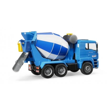 Das kippbare Fahrerhaus des MAN Betonmisch-LKWs ermöglicht die Sicht auf den Motorblock. Die Spiegel des Fahrerhauses sind ausklapp- und der Wassertank befüllbar. Die Trommel mit integrierter Mischspirale kann durch Betätigen einer Kurbel gedreht und die Betonrutschte ausgeklappt werden. Ein Eimer ist im Lieferumfang enthalten und Profilreifen runden das Bild ab. Zur Spielergänzung kann der MAN Betonmisch-LKW mit dem Light and Sound Module Art.-Nr.: 02801 ausgestattet werden (nicht im Lieferumfang enthalten)..